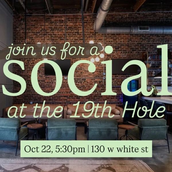 Join us for a SOCIAL at the 19th Hole at the Warehouses as we continue to celebrate our ten-year anniversary of being an organization! Enjoy a glass of wine or even swing a club or two. We can't wait to see you October 22, 5:30, 130 W White St!
